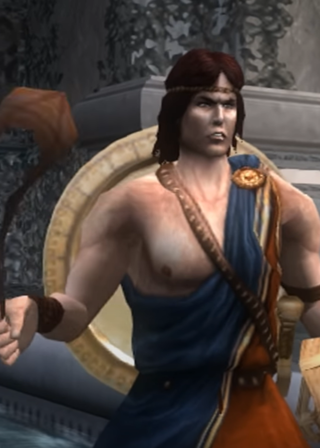 In a bitter marriage with Aphrodite, despises anyone who loves his wife, as such tries to get Kratos killed on a mission.